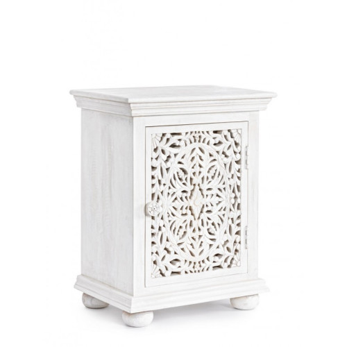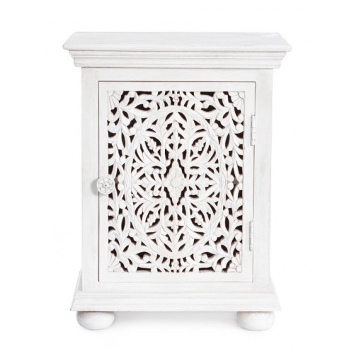 РАМА ИЗ ДЕРЕВА МАНГО С РЕЗНЫМИ ДВЕРЬМИ РУЧНОЙ РАБОТЫ,ЗАДНЯЯ СТОРОНА ИЗ МДФ. БЕЛАЯ АКРИЛОВАЯ ОТДЕЛКА С ЭФФЕКТОМ АНТИЧНОСТИ