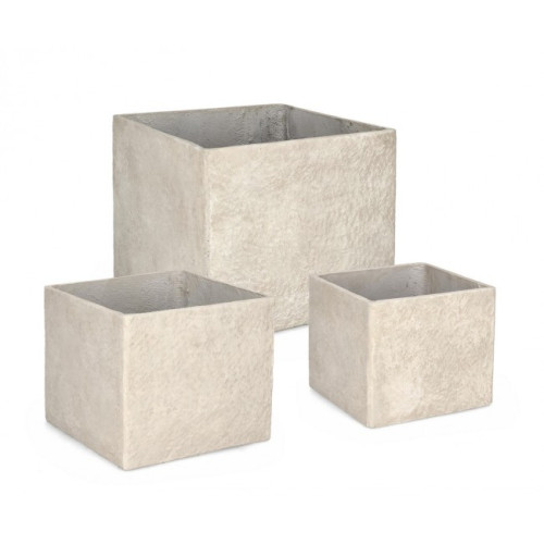 НАБОР 3 ВЫСОКОЙ КВАДРАТНОЙ БЕЖЕВОЙ ВАЗЫ MEILI ГОРШОК