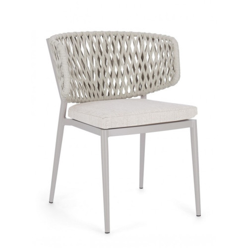 АЛЮМИНИЕВАЯ РАМА С ПОРОШКОВЫМ ПОКРЫТИЕМ (ПОЛИЭСТЕР). ПЛЕТЕНИЕ ИЗ ВЕРЕВКИ TETORON (100% ПОЛИЭСТЕР). ПОДУШКА СИДЕНЬЯ СО СЪЕМНЫМ ПОКРЫТИЕМ ИЗ ВОДООТталкивающей АКРИЛОВОЙ ТКАНИ. ШТАБИРУЕМЫЙ.