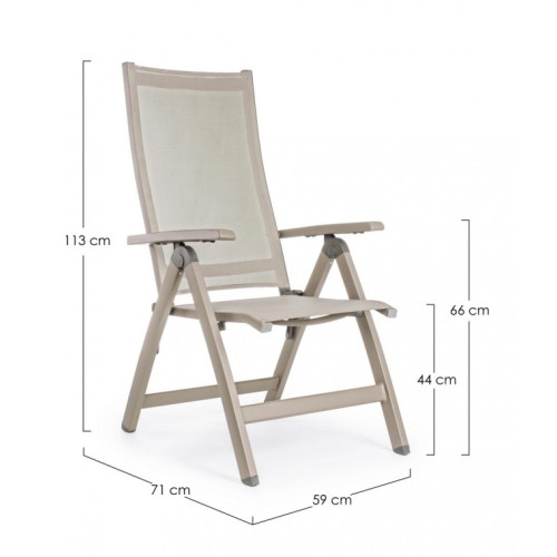 АЛЮМИНИЕВАЯ РАМА С ПОРОШКОВЫМ ПОКРЫТИЕМ (ПОЛИЭСТЕР). СИДЕНИЕ И СПИНКА ИЗ ТЕКСТИЛЕНА PHIFER 1X1. ОТКЛОНЕНИЕ СПИНКИ (5 ПОЛОЖЕНИЙ). СКЛАДЫВАНИЕ