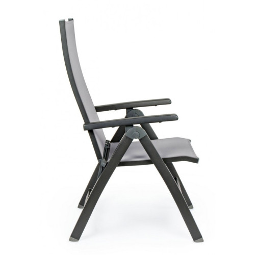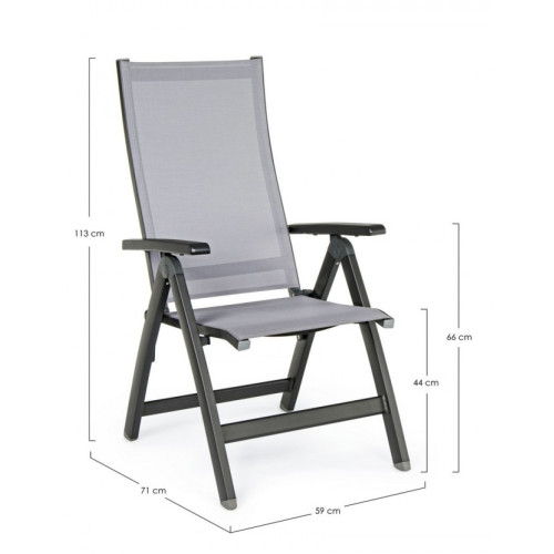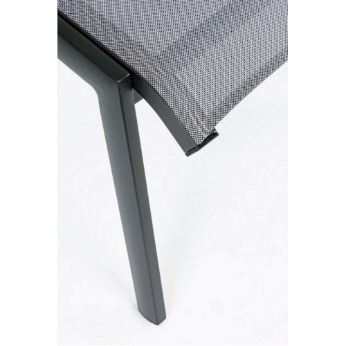 АЛЮМИНИЕВАЯ РАМА С ПОРОШКОВЫМ ПОКРЫТИЕМ (ПОЛИЭСТЕР). СИДЕНИЕ И СПИНКА ИЗ ТЕКСТИЛЕНА PHIFER 1X1. ОТКЛОНЕНИЕ СПИНКИ (5 ПОЛОЖЕНИЙ). СКЛАДЫВАНИЕ