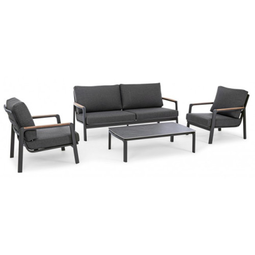 АЛЮМИНИЙ С ПОРОШКОВЫМ ПОКРЫТИЕМ (ПОЛИЭСТЕР). ПОДЛОКОТНИКИ СО ВСТАВКАМИ ТИКА. ПОДУШКИ СИДЕНЬЯ И СПИНКИ СО СЪЕМНЫМ ПОКРЫТИЕМ ИЗ АКРИЛОВОЙ ТКАНИ.
