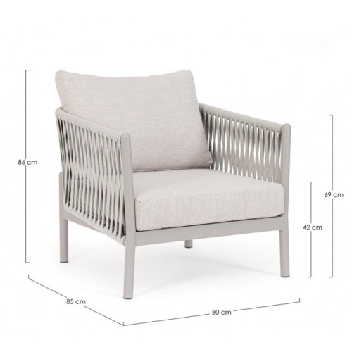 АЛЮМИНИЕВАЯ РАМА С ПОРОШКОВЫМ ПОКРЫТИЕМ (ПОЛИЭСТЕР). ПЛЕТЕНИЕ ИЗ ВЕРЕВКИ TETORON (100% ПОЛИЭСТЕР). ПОДУШКИ СИДЕНЬЯ И СПИНКИ СО СЪЕМНЫМ ПОКРЫТИЕМ ИЗ ВОДООТТАЛКИВАЮЩЕЙ ОЛЕФИНОВОЙ ТКАНИ (100% ПОЛИПРОПИЛЕНА).