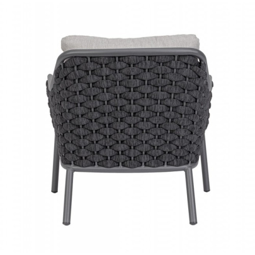 АЛЮМИНИЕВАЯ РАМА С ПОРОШКОВЫМ ПОКРЫТИЕМ (ПОЛИЭСТЕР). ТЕКСТИЛЕНОВОЕ ВЕРЕВОЧНОЕ ПЛОТЕНИЕ С НАПОЛНЕНИЕМ НИТРИЛ-КАУЧИНА. ПОДУШКА СИДЕНЬЯ СО СЪЕМНЫМ ПОКРЫТИЕМ ИЗ ВОДООТталкивающей ОЛЕФИНОВОЙ ТКАНИ (100% ПОЛИПРОПИЛЕН). .