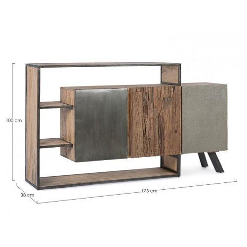 РАМА ИЗ ДЕРЕВА МАНГО И СТАЛИ, СЗАДИ ИЗ ФАНЕРЫ. ПЕРЕДНЯЯ ЧАСТЬ ДВЕРЕЙ И ЯЩИКОВ ИЗ ПЕРЕРАБОТАННОЙ ДЕРЕВЯНИИ, ЖЕЛЕЗНОГО ЛИСТА ИЛИ ФИБРОЦЕМЕНТНОЙ ОТДЕЛКИ. ЗАЩИТНОЕ АКРИЛОВОЕ ПОКРЫТИЕ. РЕГУЛИРУЕМЫЕ НОЖКИ. ИЗДЕЛИЕ ПЕРЕРАБОТАННОЕ ДЕРЕВО ХАРАКТЕРИСТИРУЕТ НАЛИЧИЕ ДЕРЕВЯННЫХ ДЮБЕЛЕЙ РАЗНЫХ ПОРОД И ЦВЕТОВ. ЛЮБЫЕ РАЗРЕЗЫ, ТРЕЩИНЫ ИЛИ НЕДОСТАТКИ, КОТОРЫЕ ТАКЖЕ МОГУТ ПОЯВИТЬСЯ С течением времени, ЯВЛЯЮТСЯ ОСОБЕННОСТЬЮ ЭТОГО МАТЕРИАЛА И ДЕЛАЮТ КАЖДУЮ ЧАСТЬ УНИКАЛЬНОЙ И ОРИГИНАЛЬНОЙ.