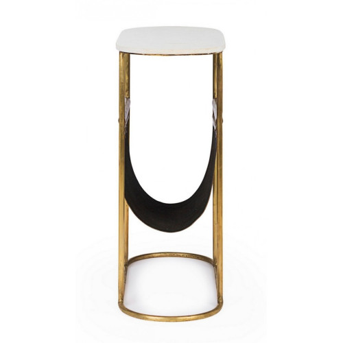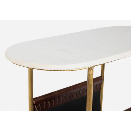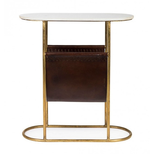 СТАЛЬНАЯ РАМА С ЛАТУННОЙ ОТДЕЛКОЙ. МРАМОРНЫЙ ВЕРХ. ПОДСТАВКА ДЛЯ ЖУРНАЛА ИЗ НАТУРАЛЬНОЙ КОЖИ.