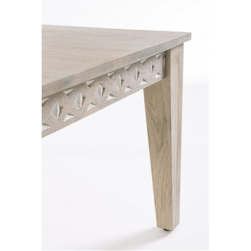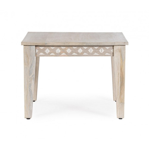 ДЕРЕВО МАНГО, КРАСКА НА ОСНОВЕ НИТРОЦЕЛЛЮЛОЗЫ СВЕТЛЫЙ БЕЛЫЙ ЦВЕТ. УКРАШЕНИЯ С ВСТАВКАМИ РУЧНОЙ РАБОТЫ. НОГИ В СБОРЕ.