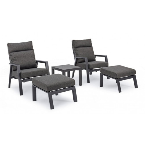 АЛЮМИНИЕВАЯ РАМА С ПОРОШКОВЫМ ПОКРЫТИЕМ (ПОЛИЭСТЕР). СВОБОДНОЕ ПОЛОЖЕНИЕ ОТКЛОНЯЕМАЯ СПИНКА И СИДЕНЬЕ ИЗ ТЕКСТИЛЕНА 1X1. ПОДУШКИ СО СЪЕМНЫМ ПОКРЫТИЕМ ИЗ ВОДООТталкивающей ОЛЕФИНОВОЙ ТКАНИ (100% ПОЛИПРОПИЛЕН). ВИНТЫ ИЗ НЕРЖАВЕЮЩЕЙ СТАЛИ.