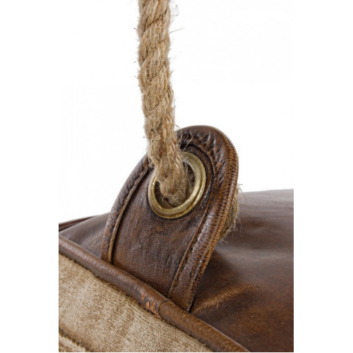 НАПОЛНИТЕЛЬ ХЛОПОК, ОБЛОЖКА ИЗ ПЕРЕРАБОТАННОГО ХОЛСТА И НАТУРАЛЬНОЙ КОЖИ. РУЧКА ВЕРЕВКА.