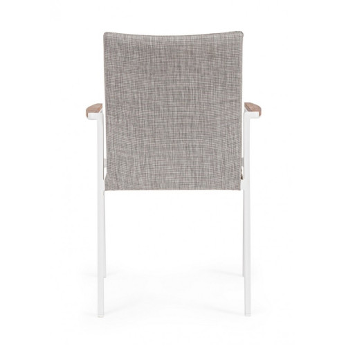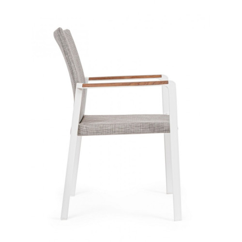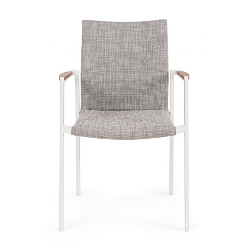 АЛЮМИНИЙ С ПОРОШКОВЫМ ПОКРЫТИЕМ (ПОЛИЭСТЕР). ПОДЛОКОТНИКИ СО ВСТАВКАМИ ТИКА. СИДЕНЬЕ И СПИНКА С НАРУЖНОЙ ТКАНЬЮ (70% ТЕКСТИЛЕН, 30% ОЛЕФИН), НАПОЛНЕНИЕ БЫСТРОСУХОЙ ПЕНОЙ. ШТАБИРУЕМЫЙ.
