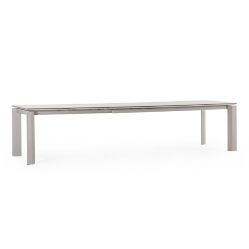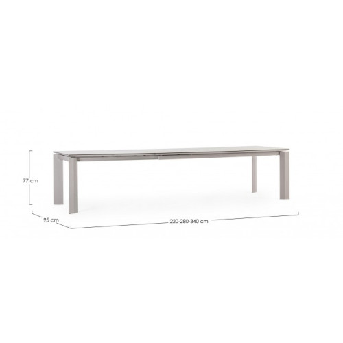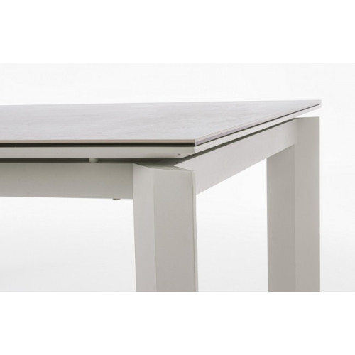 АЛЮМИНИЕВАЯ РАМА С ПОРОШКОВЫМ ПОКРЫТИЕМ (ПОЛИЭСТЕР). КЕРАМИЧЕСКАЯ СТОЛЕШНЯ (СО СТЕКЛЯННЫМ ОСНОВАНИЕМ) ОБЩАЯ ТОЛЩИНА 9 ММ. ВЫДВИЖНАЯ С ТЕЛЕСКОПИЧЕСКИМ ОТКРЫТИЕМ. ВНЕШНИЕ РАСШИРЕНИЯ, КОТОРЫЕ МОЖНО ХРАНИТЬ ПОД ВЕРХНЕЙ ЧАСТЬЮ. ВИНТЫ ИЗ НЕРЖАВЕЮЩЕЙ СТАЛИ. НОЖКИ ДЛЯ СБОРА