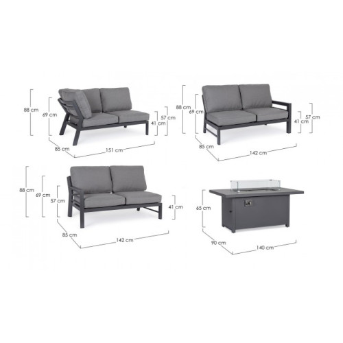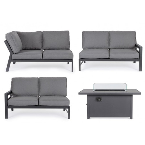 АЛЮМИНИЙ С ПОРОШКОВЫМ ПОКРЫТИЕМ (ПОЛИЭСТЕР). ПОДУШКИ СО СЪЕМНЫМИ ВОДООТталкивающими Чехлами ИЗ 100% ПОЛИЭСТЕРА. АЛЮМИНИЕВЫЙ СТОЛ С ПОРОШКОВЫМ ПОКРЫТИЕМ (ПОЛИЭСТЕР) СО СТЕКЛЯННОЙ СТОЛЕШНИЦЕЙ (ТОЛЩИНА 8 ММ), ЭКРАНОМ С ЭФФЕКТОМ КЕРАМИКИ И ЦЕНТРАЛЬНЫМ ГАЗОВЫМ КАМИНОМ. КАМИННЫЙ ЭКРАН ИЗ ЗАКАЛЕННОГО СТЕКЛА И АЛЮМИНИЕВОЙ КРЫШКИ. ГОРЕЛКА ИЗ НЕРЖАВЕЮЩЕЙ СТАЛИ (#304). РУЧКА ЗАЖИГАНИЯ (МАКСИМАЛЬНАЯ МОЩНОСТЬ 14,7 кВтч). КАМНИ ВКЛЮЧЕНЫ. ГАЗОВЫЙ БАЛЛОН (ВМЕСТИМОСТЬ ДО 5 КГ, ВЫСОТА МАКСИМАЛЬНО 45 СМ), РЕЗИНОВЫЙ ГАЗОВЫЙ ШЛАНГ, РЕГУЛЯТОР НИЗКОГО ДАВЛЕНИЯ И РУЧКА БАТАРЕИ (1XAAA) НЕ ВХОДЯТ В КОМПЛЕКТ. В КОМПЛЕКТ ВХОДИТ ПОКРЫТИЕ ДЛЯ СТОЛИКА ИЗ 100% ПОЛИЭСТЕРА (180 ГР/М2) С ПОЛИУРЕТАНОВЫМ ПОКРЫТИЕМ, ВОДООТталкивающим И УФ-УФ-УСТОЙЧИВЫМ.