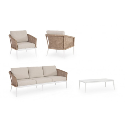 СТРУКТУРА ИЗ АЛЮМИНИЯ С ПОРОШКОВЫМ ПОКРЫТИЕМ (ПОЛИЭСТЕР). СИДЕНЬЕ ПОКРЫТОЕ СИНТЕТИЧЕСКИМ ВОЛОКНОМ (КРУГЛЫЙ 3,5 ММ). СЪЕМНЫЕ ПОДУШКИ СИДЕНЬЯ И СПИНКИ ИЗ ОЛЕФИНОВОЙ ВОДООТталкивающей ТКАНИ (100% ПОЛИПРОПИЛЕН). НОЖКИ ЖУРНАЛЬНОГО СТОЛИКА (С РЕГУЛИРУЕМЫМИ НОЖКАМИ И ВИНТАМИ ИЗ НЕРЖАВЕЮЩЕЙ СТАЛИ) СЛЕДУЮТ СБОРКИ.