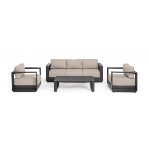 СТРУКТУРА ИЗ АЛЮМИНИЯ С ПОРОШКОВЫМ ПОКРЫТИЕМ (ПОЛИЭСТЕР). ПОДУШКИ СИДЕНЬЯ И СПИНКА СЪЕМНЫЕ, ИЗ ОЛЕФИНОВОЙ ВОДООТталкивающей ТКАНИ (100% ПОЛИПРОПИЛЕН). РЕГУЛИРУЕМЫЕ НОЖКИ. НОЖКИ ЖУРНАЛЬНОГО СТОЛИКА (ВИНТЫ ИЗ НЕРЖАВЕЮЩЕЙ СТАЛИ) СЛЕДУЮТ СБОРКИ.