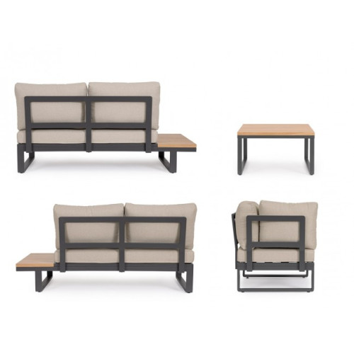 СТРУКТУРА ИЗ АЛЮМИНИЯ С ПОРОШКОВЫМ ПОКРЫТИЕМ (ПОЛИЭСТЕР). СТОРОНЫ ДИВАНА И АЛЮМИНИЕВАЯ СТОЛЕШНИЦА ЖУРНАЛЬНОГО СТОЛИКА С ПОКРЫТИЕМ С ЭФФЕКТОМ ДЕРЕВА. СЪЕМНЫЕ ПОДУШКИ СИДЕНЬЯ И СПИНКА ИЗ ОЛЕФИНОВОЙ ВОДООТТАЛКИВАЮЩЕЙ ТКАНИ (100% ПОЛИПРОПИЛЕН). ВИНТЫ ИЗ НЕРЖАВЕЮЩЕЙ СТАЛИ. РЕГУЛИРУЕМЫЕ НОЖКИ. ПОДЛЕЖИТ СБОРКЕ.
