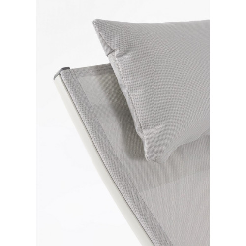 АЛЮМИНИЕВАЯ РАМА С ПОРОШКОВЫМ ПОКРЫТИЕМ (ПОЛИЭСТЕР). ТЕКСТИЛЕН 1Х1. ТРИ ПОЛОЖЕНИЯ ОТКЛОНЕНИЯ СПИНКИ. СЪЕМНАЯ ПОДУШКА ПОДГОЛОВНИКА СО СЪЕМНЫМ ПОКРЫТИЕМ И НАПОЛНИТЕЛЕМ ДЛЯ ВНЕШНЕГО ИСПОЛЬЗОВАНИЯ БЫСТРО СУХАЯ ПЕНА. ВИНТЫ ИЗ НЕРЖАВЕЮЩЕЙ СТАЛИ. ПОДЛЕЖИТ СБОРКЕ.