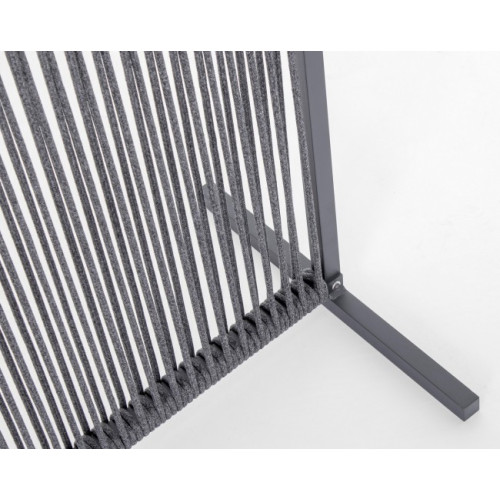 АЛЮМИНИЕВАЯ РАМА С ПОРОШКОВЫМ ПОКРЫТИЕМ (ПОЛИЭСТЕР). ВЕРЕВОЧНОЕ ПЛОТЕНИЕ ИЗ ОЛЕФИНОВОЙ ТКАНИ (100% ПОЛИПРОПИЛЕНА). НОЖКИ В СБОРЕ.