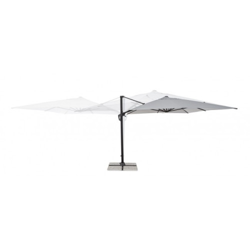 СТРУКТУРА ИЗ АЛЮМИНИЯ С ПОРОШКОВЫМ ПОКРЫТИЕМ (ПОЛИЭСТЕР). ПОЛЮС 55Х82ММ. 8 РЕЕК 14,5Х24ММ. СВЕТЛО-СЕРЫЙ ПОЛИЭФИРНЫЙ ПОКРЫТИЕ 250ГР/М2 С ПА (ПОЛИАМИДНЫМ) ПОКРЫТИЕМ С ВЕТРОЗАЩИТНЫМ ДЫМОХОДОМ. СТАЛЬНАЯ КРЕСТОВАЯ ОСНОВА. ВРАЩАЮЩАЯСЯ НА 360° СТОЙКА С ПЕДАЛИ. ВЕРТИКАЛЬНЫЙ НАКЛОН С 5-ПОЛОЖЕННОЙ РУЧКОЙ. ВКЛЮЧАЯ КРЫШКУ ЗОНТА. ПЛИТКА НЕ ВКЛЮЧЕНА.