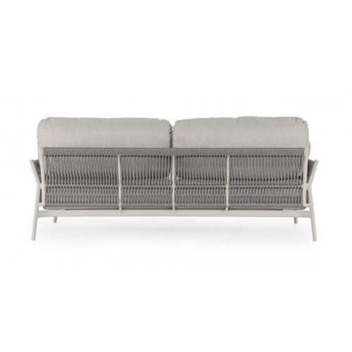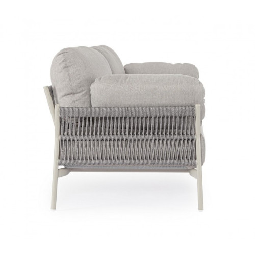 АЛЮМИНИЕВАЯ РАМА С ПОРОШКОВЫМ ПОКРЫТИЕМ (ПОЛИЭСТЕР). ВЕРЕВОЧНОЕ ПЛОТЕНИЕ ИЗ ОЛЕФИНОВОЙ ТКАНИ (100% ПОЛИПРОПИЛЕНА). ПОДУШКИ СИДЕНЬЯ И СПИНКИ СО СЪЕМНЫМ ПОКРЫТИЕМ ИЗ ВОДООТТАЛКИВАЮЩЕЙ ОЛЕФИНОВОЙ ТКАНИ (100% ПОЛИПРОПИЛЕНА).