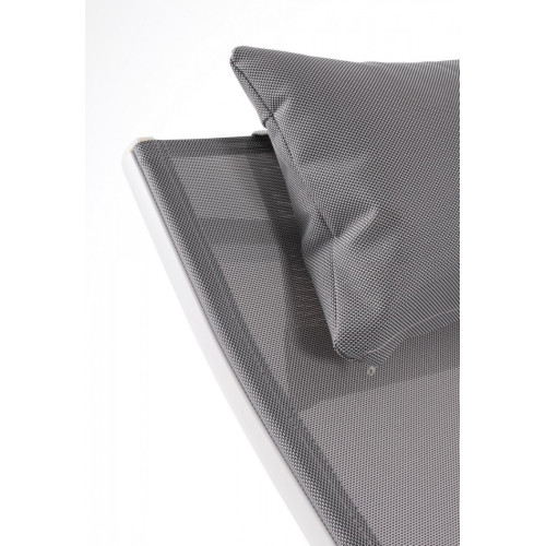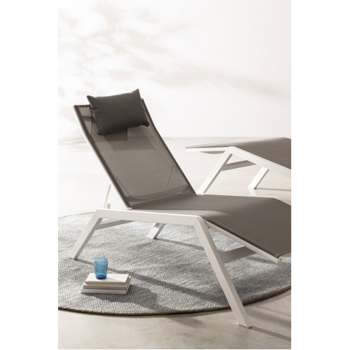АЛЮМИНИЕВАЯ РАМА С ПОРОШКОВЫМ ПОКРЫТИЕМ (ПОЛИЭСТЕР). ТЕКСТИЛЕН 1Х1. ТРИ ПОЛОЖЕНИЯ ОТКЛОНЕНИЯ СПИНКИ. СЪЕМНАЯ ПОДУШКА ПОДГОЛОВНИКА СО СЪЕМНЫМ ПОКРЫТИЕМ И НАПОЛНИТЕЛЕМ ДЛЯ ВНЕШНЕГО ИСПОЛЬЗОВАНИЯ БЫСТРО СУХАЯ ПЕНА. ВИНТЫ ИЗ НЕРЖАВЕЮЩЕЙ СТАЛИ. ПОДЛЕЖИТ СБОРКЕ.